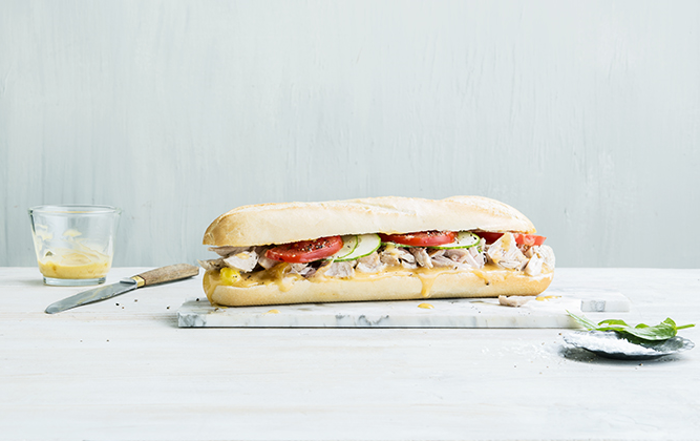 Warm en hartig: deze baguette combineert malse stukjes kip met een romige curryspread, gemaakt van Rama Creamy Delight en Knorr Primerba Curry. Verse groenten zoals tomaat en komkommer voegen een knapperige textuur toe, terwijl het Pastridor Frans stokbrood zorgt voor een stevige bite. Als snelle lunchoptie of voor een lichte maaltijd.
