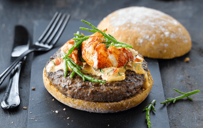 Combineer luxe en comfort met deze verfijnde surf & turf burger. Het Pastridor Café Hamburger Bun vormt de basis voor een sappige rundvleesburger en een malse kreeftstaart. Romige Thousand Islands dressing voegt een tropisch tintje toe, terwijl ijsbergsla, tomaat en rode ui zorgen voor frisheid en textuur. De optionele toevoeging van zeekraal biedt een zilte smaak die het gerecht compleet maakt. Voor een unieke dinerervaring.