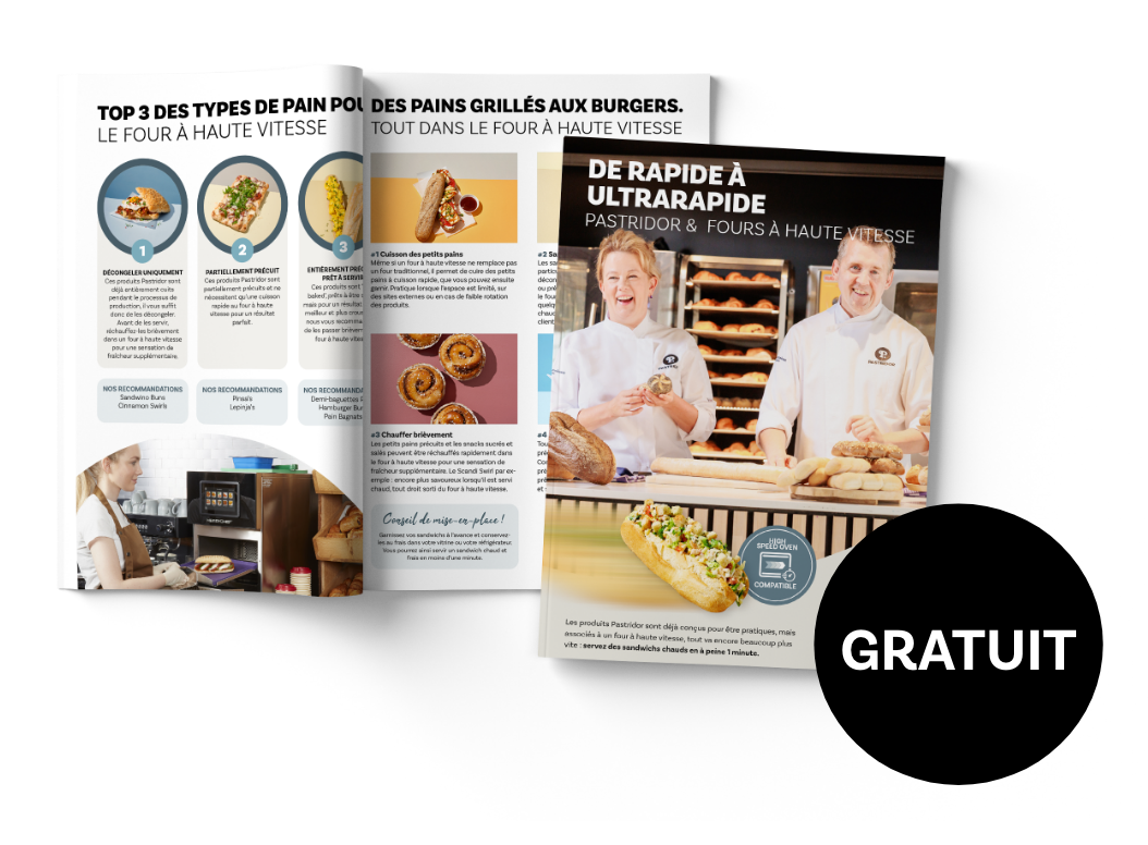 Druk in de keuken? Haastige klanten? Tekort aan ervaren personeel? Dan is snelheid alles. Onze Pastridor producten zijn al ontworpen voor gemak, maar met een high speed oven serveer je grilled sandwiches, panini’s, croques, hamburgers en hartige snacks in amper 1 minuut. Zo simpel kan het zijn.