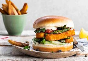 Un Pastridor Brioche Hamburger Bun moelleux constitue la base de cette sensation fraîche au poisson. Des sticks de poisson croustillants sont associés...