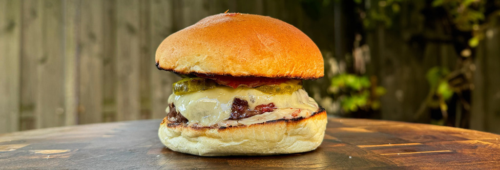 Il Potato Bun Burger unisce le classiche tradizioni americane degli hamburger con un tocco contemporaneo per un pasto saporito. Questa ricetta combina costolette e collo macinati, che creano un sapore ricco e corposo. La baconnaise unica, una deliziosa salsa con il gusto saporito della pancetta e la cremosità della maionese, dona all'hamburger una dimensione in più. Le sottili note di barbecue completano il quadro. Servi il succoso hamburger su un panino di patate Pastridor tostato per un sapore burroso e una sensazione setosa in bocca.