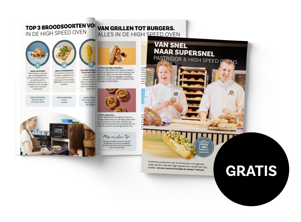 Druk in de keuken? Haastige klanten? Tekort aan ervaren personeel? Dan is snelheid alles. Onze Pastridor producten zijn al ontworpen voor gemak, maar met een high speed oven serveer je grilled sandwiches, panini’s, croques, hamburgers en hartige snacks in amper 1 minuut. Zo simpel kan het zijn.