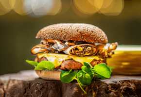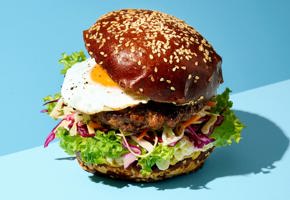 Deze volledig plantaardige burger biedt een rijke smaakervaring met een knoflook-aioli en gekonfijte sjalotten. De champignonmix en vegan cheddar make...
