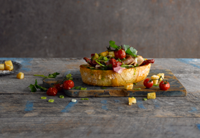 Presenteer een veelzijdig en kleurrijk gerecht met dit molenaarsmandje. Pastridor Molenaarsbrood Wit vormt de basis voor een mix van gerookte ham, ger...