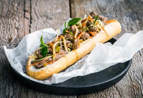 Een knapperig Pastridor Piccolo wit vormt de basis voor dit authentieke Vietnamese broodje. Gevuld met kruidige rundsreepjes, frisse groenten zoals wo...