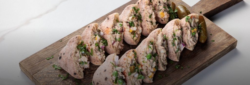 Voor dit Viral Tuna Salad recept meng je tonijn met mayonaise, wasabi, olie en een scheutje citroen. Vervolgens voeg je gesneden komkommer, maïs, augurk, uitjes, kappertjes en een vleugje honing toe. Roer alles goed door en vul het mengsel eenvoudig in het voorgesneden Mini Naanta Pocket Bread. Even aftoppen met wat verse peterselie, en je hebt heerlijke, deelbare broodjes voor de lunchkaart of borrelplank. Smaakvol, snel te bereiden en lekker veelzijdig!